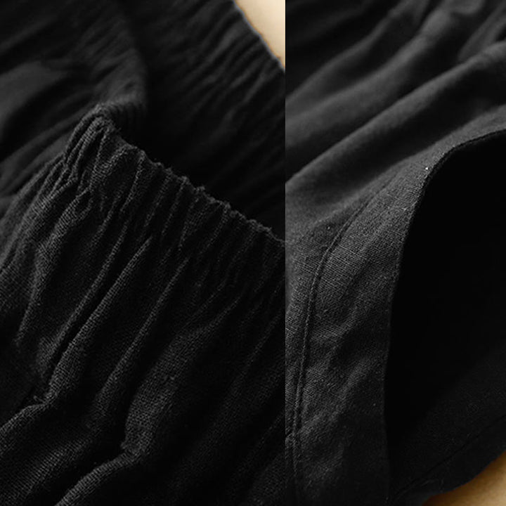 Buddha Stones Commute Casual Pure Color Women's Wide Leg Cotton Cropped Pants With Pockets - Black - US8-10,UK/AU12-14,EU40-42 (2XL) - image 6