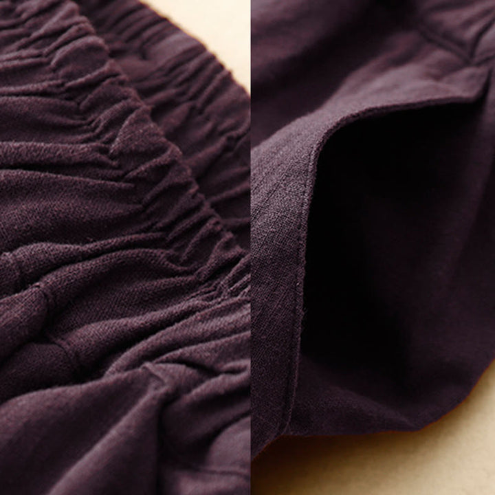 Buddha Stones Commute Casual Pure Color Women's Wide Leg Cotton Cropped Pants With Pockets - Purple - US8-10,UK/AU12-14,EU40-42 (2XL) - image 12