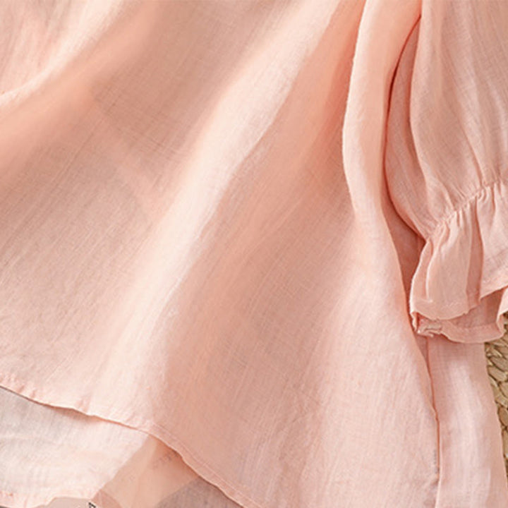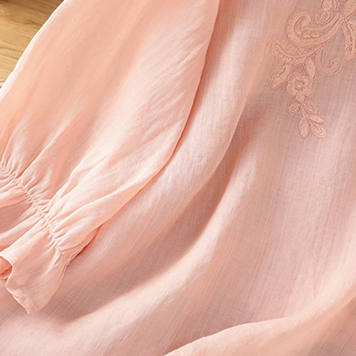 Buddha Stones Flower Vines Embroidery Button Crew Neck Three Quarter Sleeve Women's Cotton Shirt - LightPink - US12,UK/AU16,EU44 (2XL) - image 18