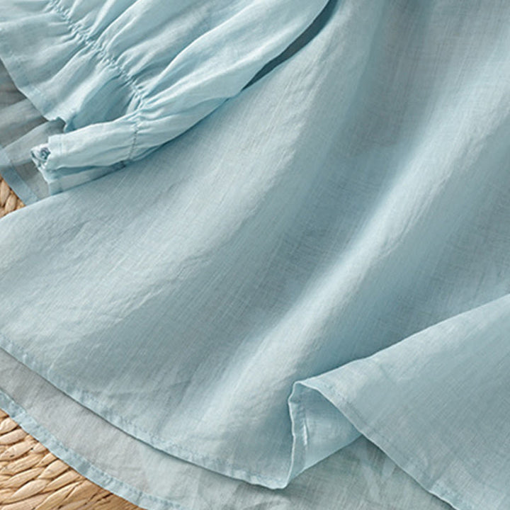 Buddha Stones Flower Vines Embroidery Button Crew Neck Three Quarter Sleeve Women's Cotton Shirt - LightBlue - US12,UK/AU16,EU44 (2XL) - image 26