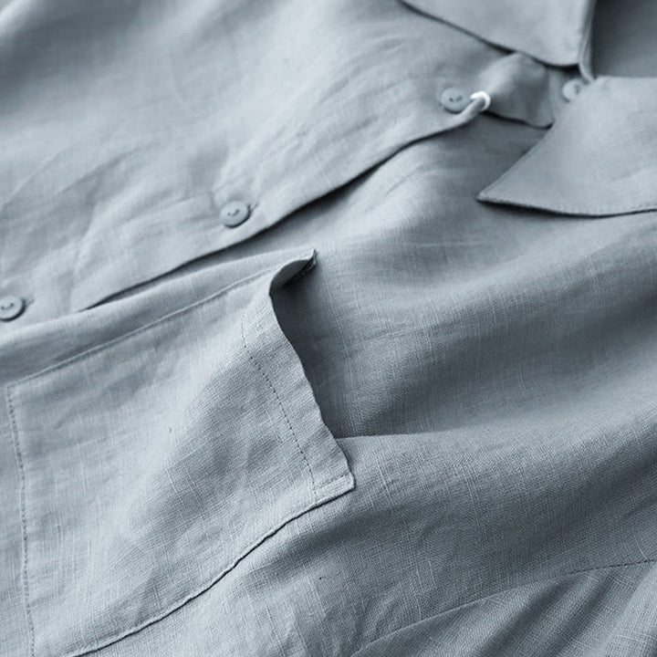 Buddha Stones Summer 2pcs Plain Long Sleeve Shirt Top Cardigan Shorts Meditation Clothing Women's Set With Pockets - image 1