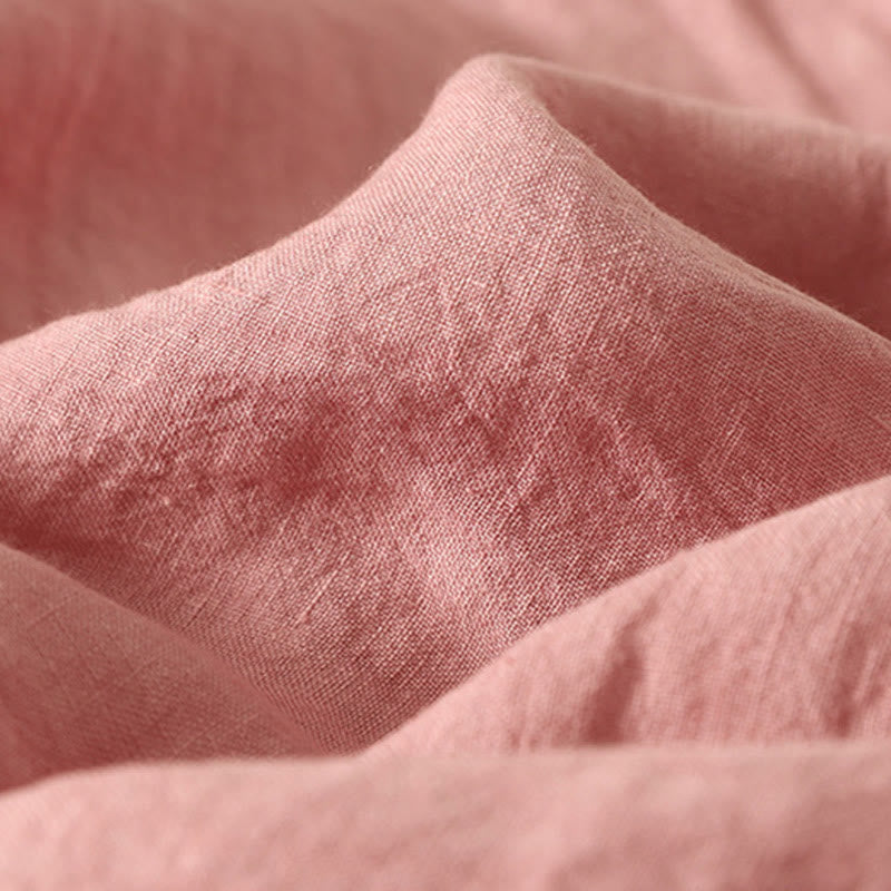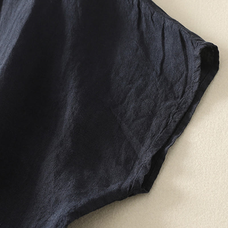 Buddha Stones Summer Plain Red Buttons Short Sleeve Women's Cotton Linen Shirt