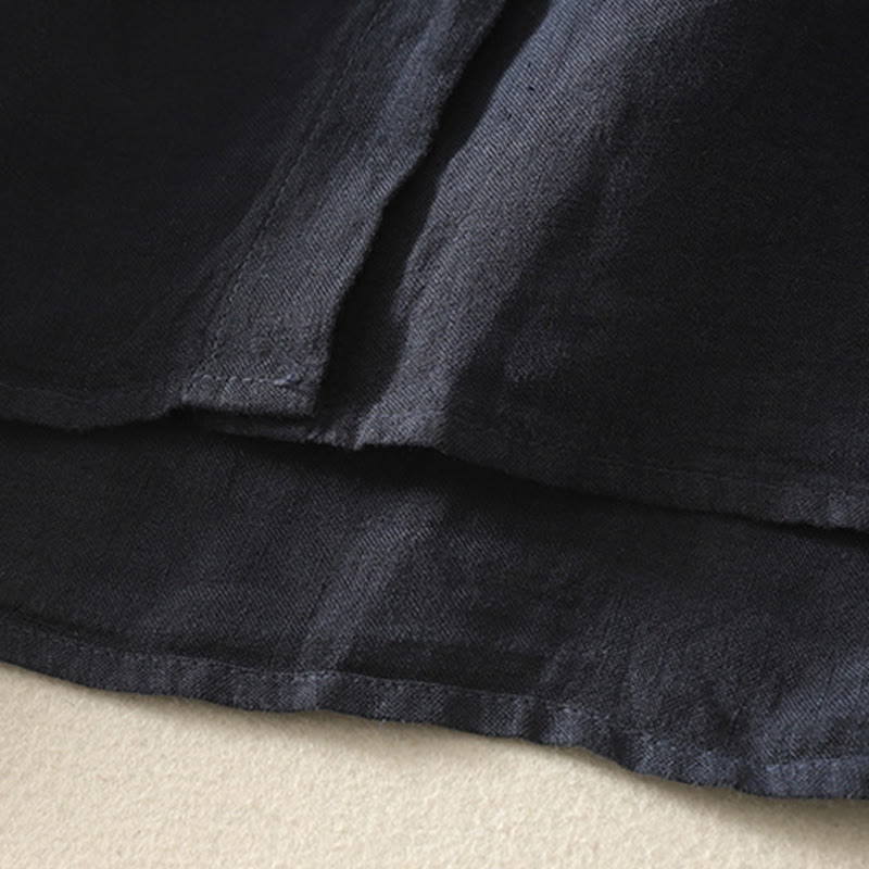 Buddha Stones Summer Plain Red Buttons Short Sleeve Women's Cotton Linen Shirt - MidnightBlue - US14,UK/AU18,EU46 (2XL) - image 0