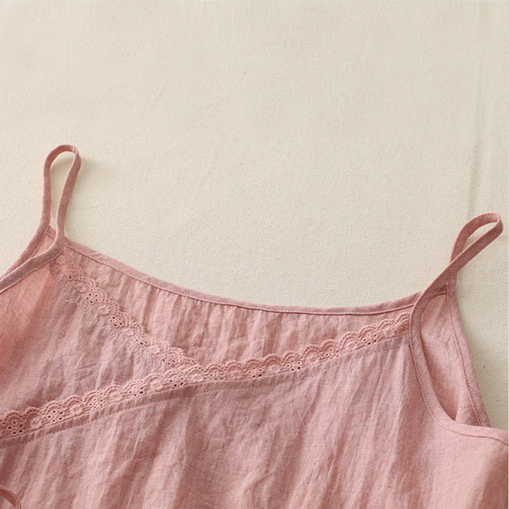 Buddha Stones Vintage Side Lace-up Splicing Lace V-neck Sleeveless Women's Vest