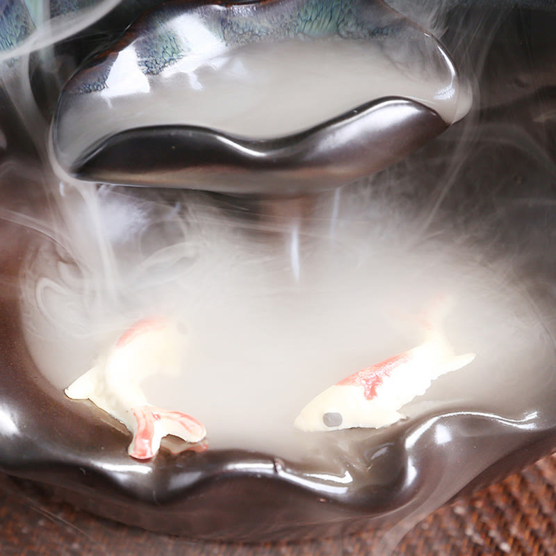 Buddha Stones Blue Lotus Leaf Ceramic Backflow Smoke Fountain Spiritual Incense Burner Decoration