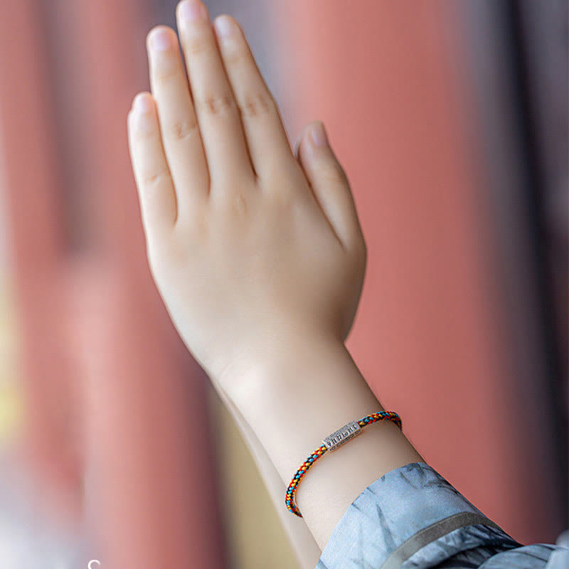 Buddha Stones Red String Black String Six True Words 925 Sterling Silver Luck Bracelet