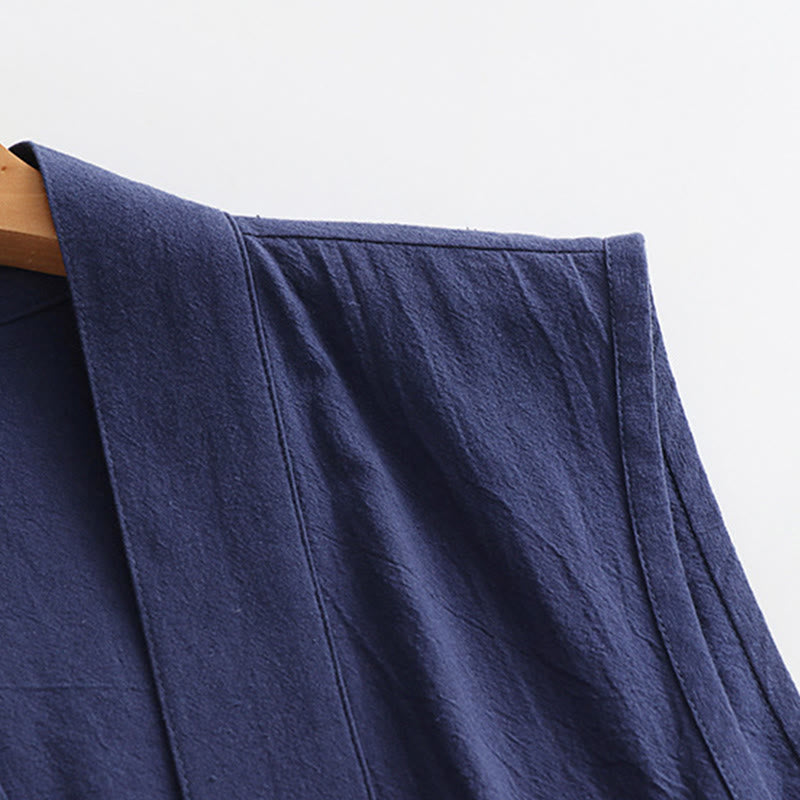 Buddha Stones 2Pcs Fall Solid Long Sleeve Men's Taoist Long Robe Lace-up Kimono Sleeveless Vest Qigong Ceremony Suit - image 10