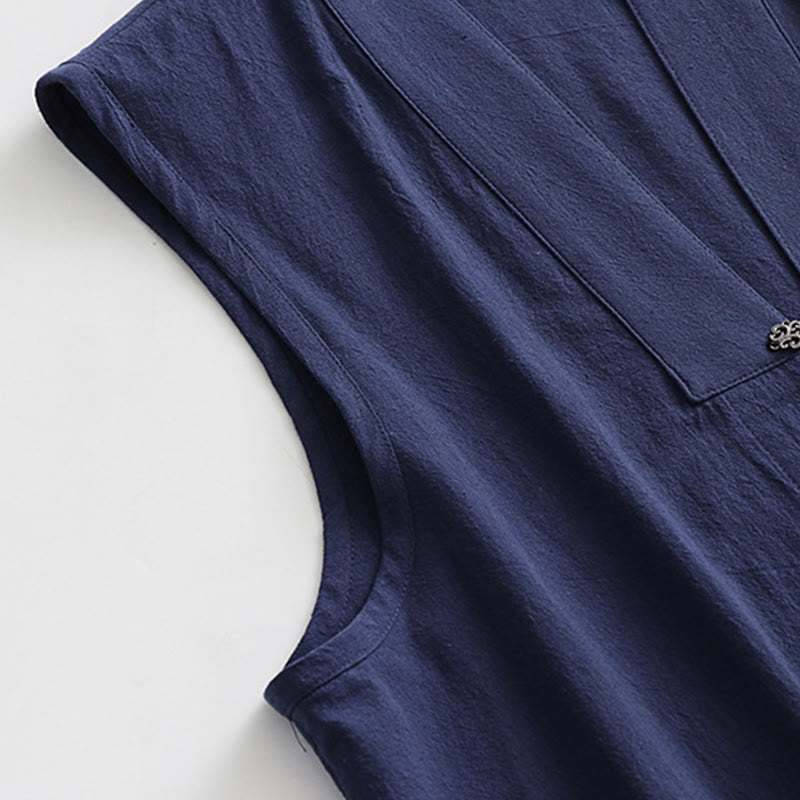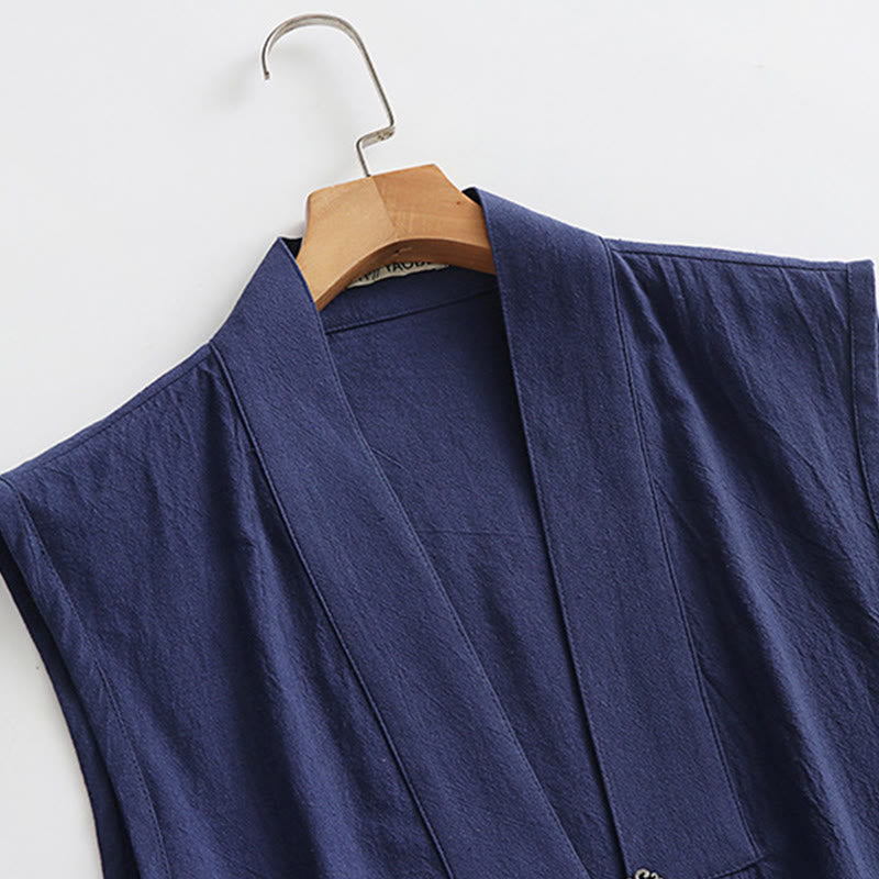 Buddha Stones 2Pcs Fall Solid Long Sleeve Men's Taoist Long Robe Lace-up Kimono Sleeveless Vest Qigong Ceremony Suit - image 7