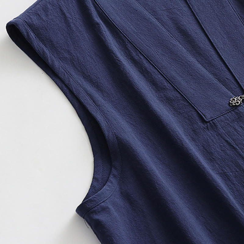 Buddha Stones 2Pcs Wudang Fall Solid Long Sleeve Men's Taoist Long Robe Sleeveless Vest Lace-up Kimono Ceremony Suit - SteelBlue - US/UK/AU54,EU64 (9XL) - image 12
