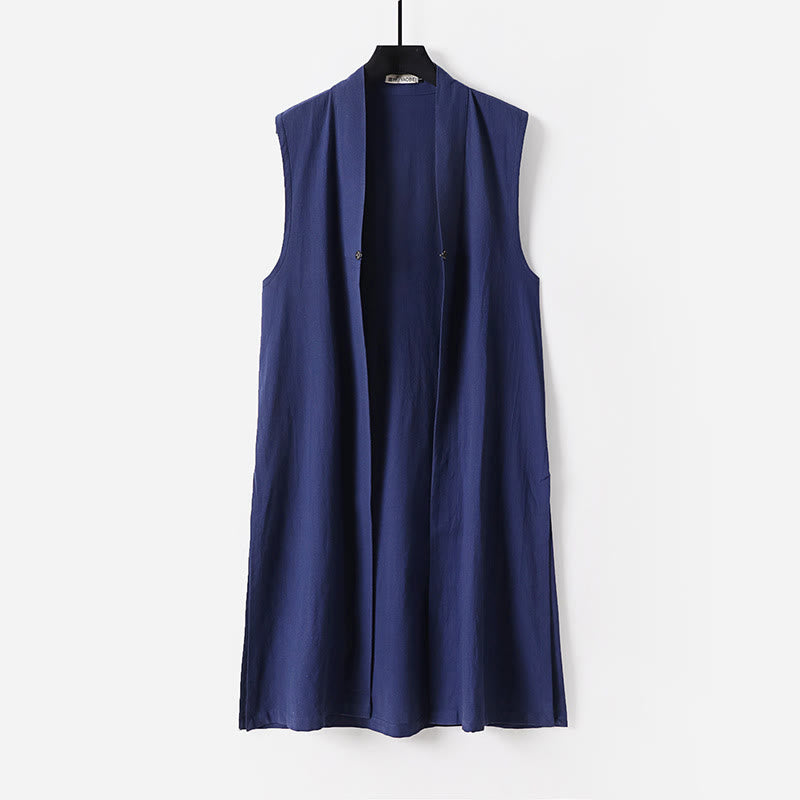 Buddha Stones 2Pcs Wudang Fall Solid Long Sleeve Men's Taoist Long Robe Sleeveless Vest Lace-up Kimono Ceremony Suit