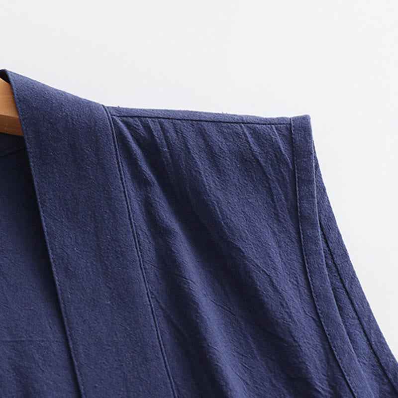 Buddha Stones 2Pcs Wudang Fall Solid Long Sleeve Men's Taoist Long Robe Sleeveless Vest Lace-up Kimono Ceremony Suit - image 7