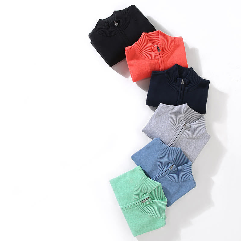 Buddha Stones Ribbed Solid Color Hem Design Men's Mock Neck Long Sleeve Pure Cotton Sweater