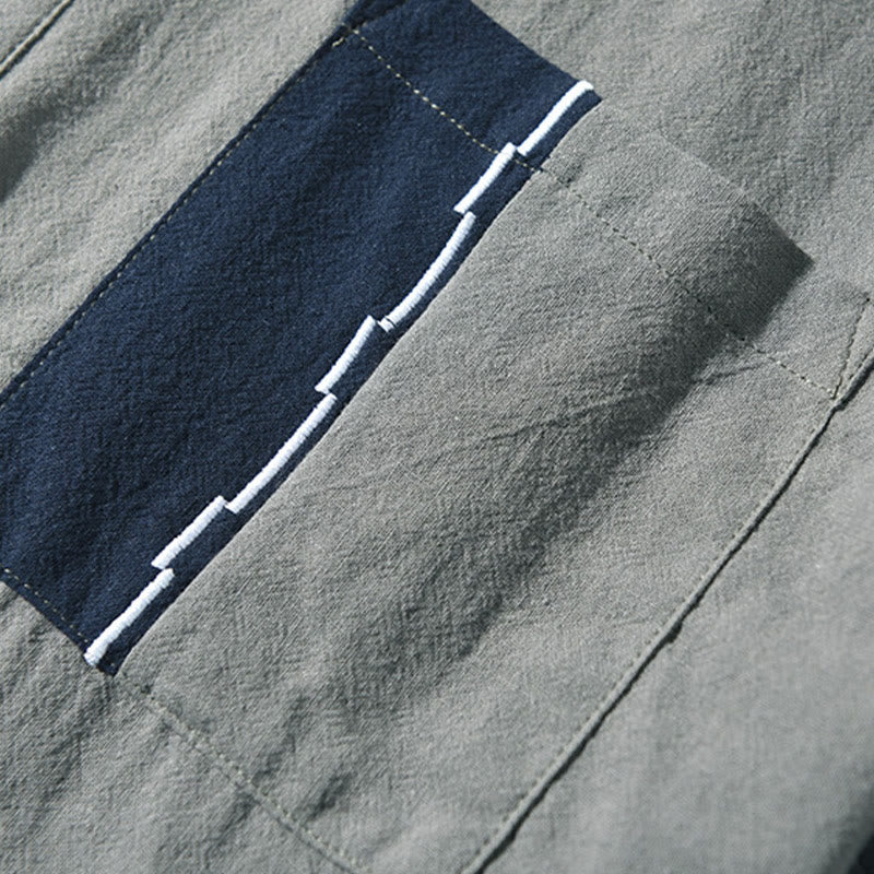 Buddha Stones Color Contrast Half Button Men's Short Sleeve Cotton Linen Shirt With Pocket