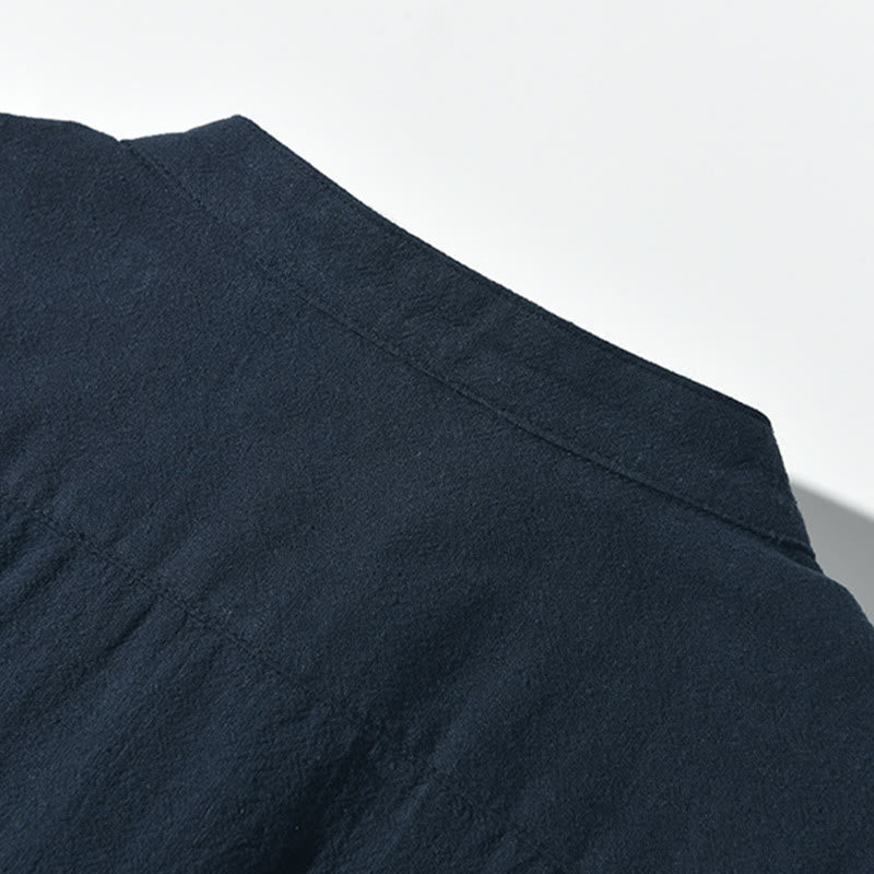 Buddha Stones Color Contrast Half Button Men's Short Sleeve Cotton Linen Shirt With Pocket - MidnightBlue - US/UK/AU42,EU52 (3XL) - image 13