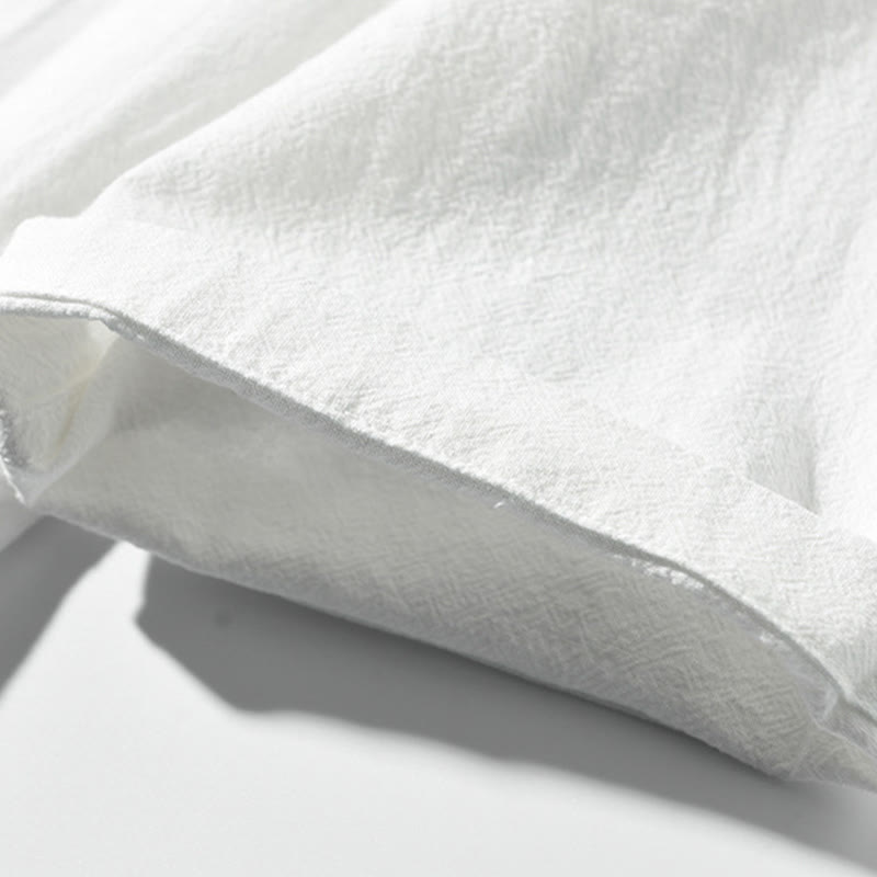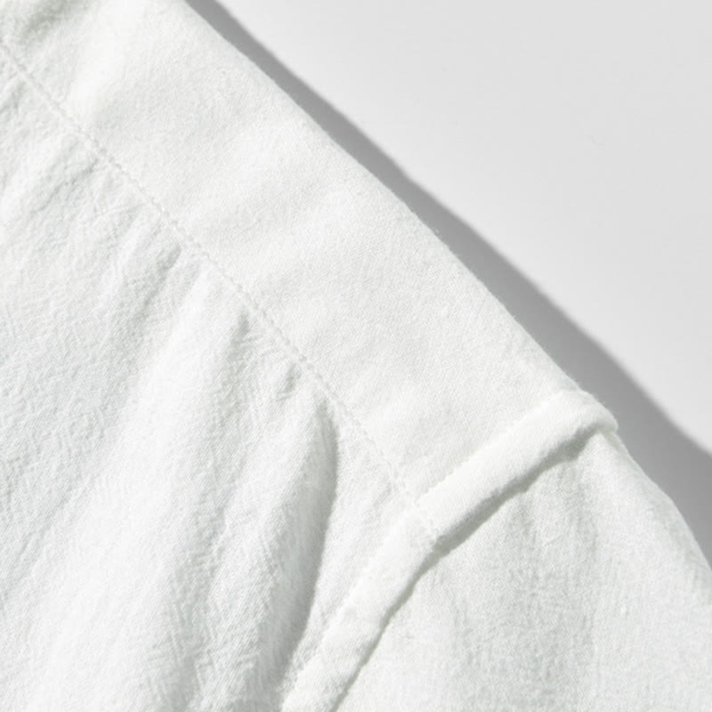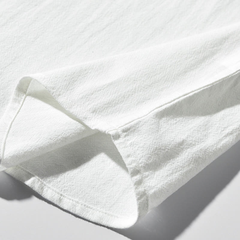 Buddha Stones Color Contrast Half Button Men's Short Sleeve Cotton Linen Shirt With Pocket - White - US/UK/AU42,EU52 (3XL) - image 0