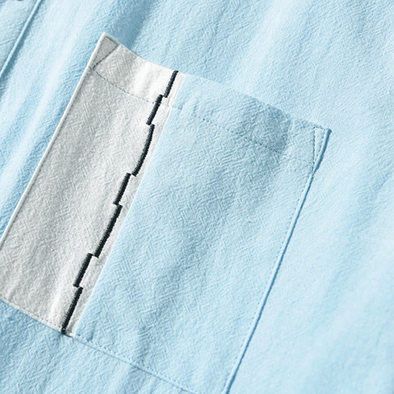 Buddha Stones Color Contrast Half Button Men's Short Sleeve Cotton Linen Shirt With Pocket - LightSkyBlue - US/UK/AU42,EU52 (3XL) - image 10