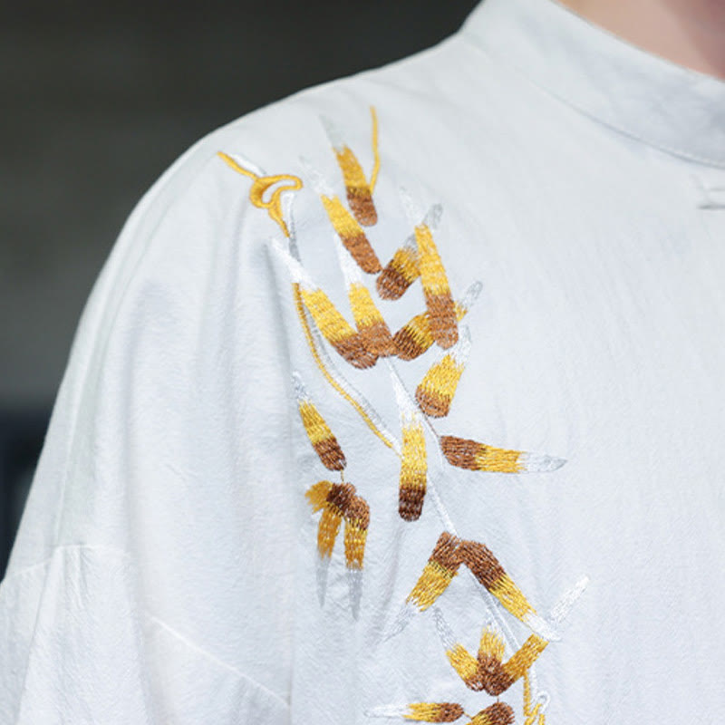 Buddha Stones Embroidery Men's  Chinese Frog-Button Three Quarter Sleeve Shirt Clothing - image 27