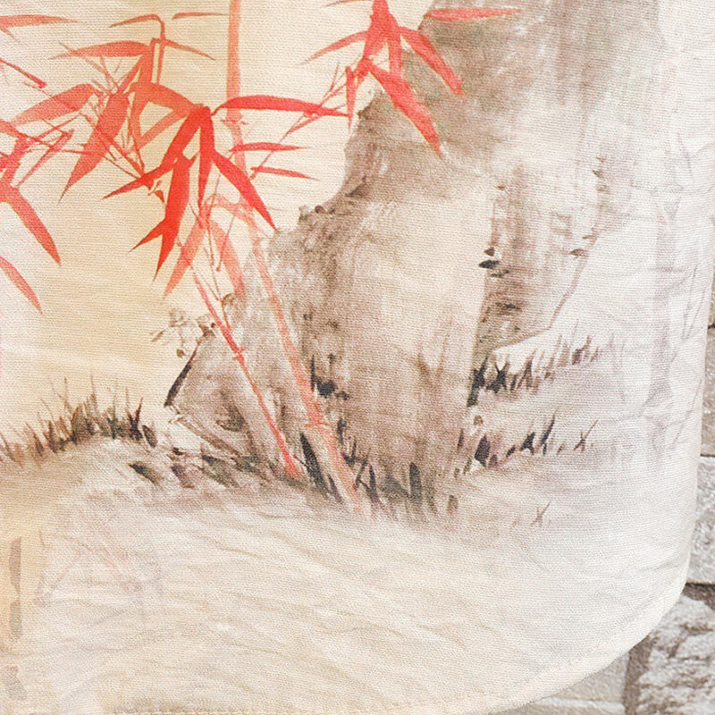 Buddha Stones Summer Bamboo Butterfly Pattern Short Sleeve Frog-button Design Men's Shirt Jacket - image 4