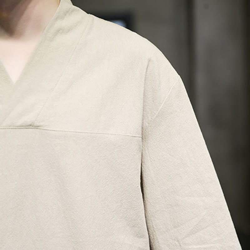 Buddha Stones Summer Casual Simple V-Neck Design Men's Cotton Linen Three Quarter Sleeve T-Shirt With Front Pocket - image 17