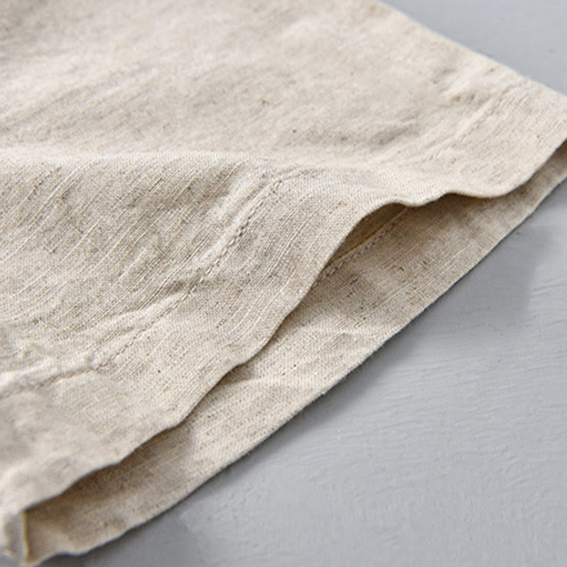 Buddha Stones Summer Solid Color Men's Half Button Short Sleeve Cotton Linen Shirt
