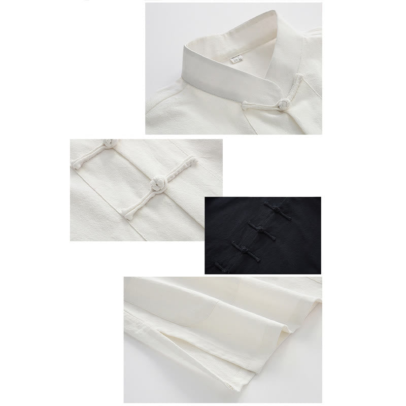 Buddha Stones Tang Frog-Button Long Sleeve Shirt Cotton Men's Clothing