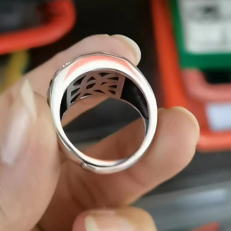 Buddha Stones 925 Sterling Silver Sanskrit Design Carved Protection Adjustable Ring