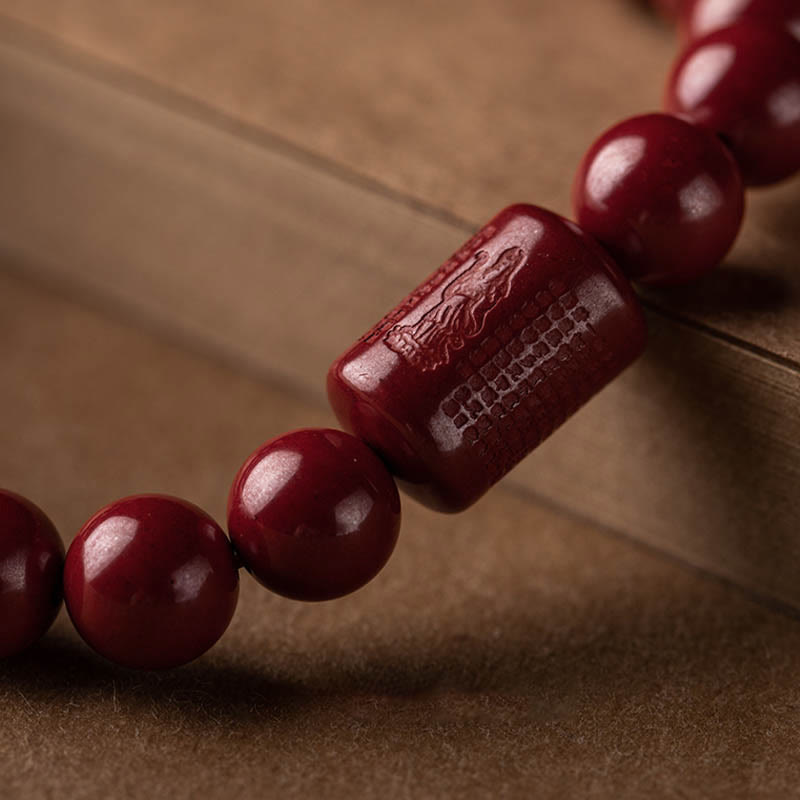 Buddha Stones Natural Cinnabar Heart Sutra Blessing Bracelet