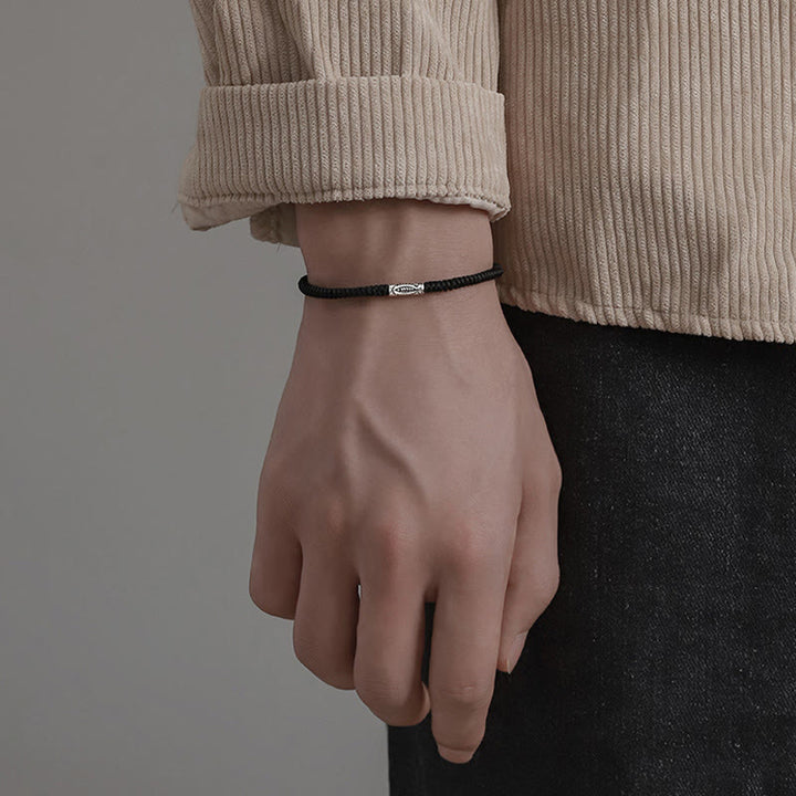 Buddha Stones Tibet Koi Fish Wealth Black String Bracelet