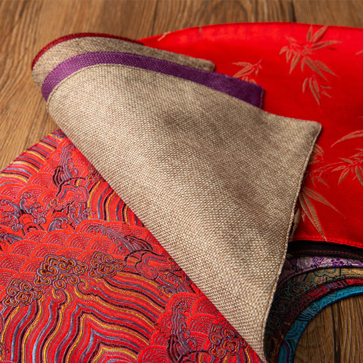 Buddha Stones Vintage Sea Wave Bamboo Plum Blossom Embroidered Cup Mat Pad Tea Cup Coaster Kung Fu Tea Mat