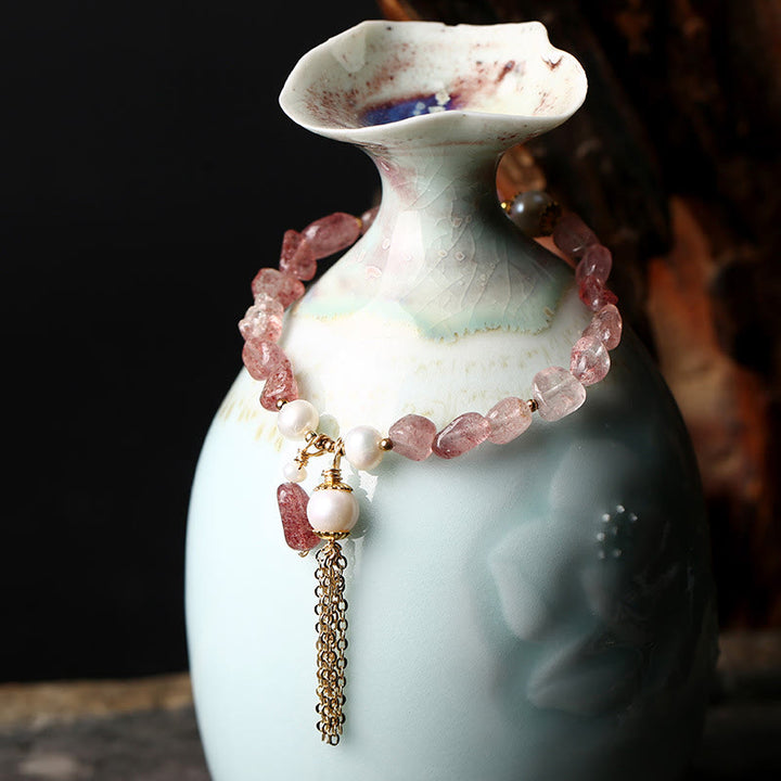 - Material: Strawberry Quartz, Pearl, Copper Plated 14K Gold