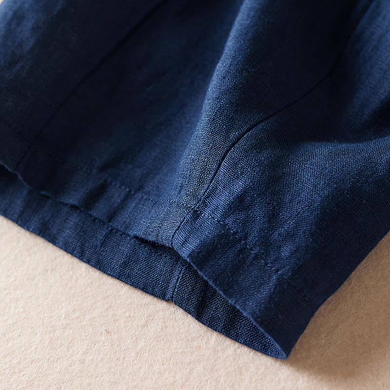 Buddha Stones Colored Thread 7-8 Length Women's Harem Cotton Linen Pants With Pockets - Navy - US12,UK/AU16,EU44 (3XL) - image 9