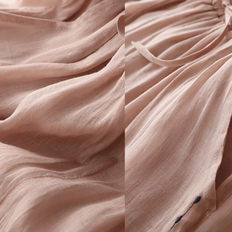 Buddha Stones Commute Solid Color Embroidery Drawstring Women's Wide Leg Ankle-Length Cotton Pants With Pockets - RosyBrown - US8-10,UK/AU12-14,EU40-42 (2XL) - image 16