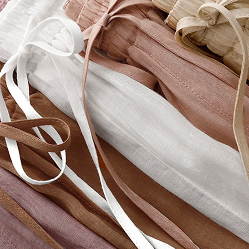 Buddha Stones Commute Solid Color Embroidery Drawstring Women's Wide Leg Ankle-Length Cotton Pants With Pockets - image 23