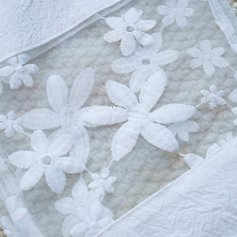 Buddha Stones Summer Daily FloralWhite Plain Patchwork Lace Design Cotton Linen Women's Pants With Pockets