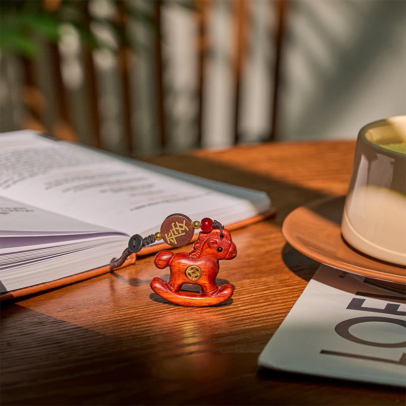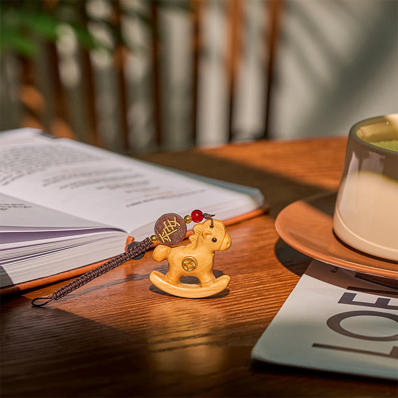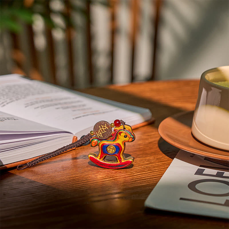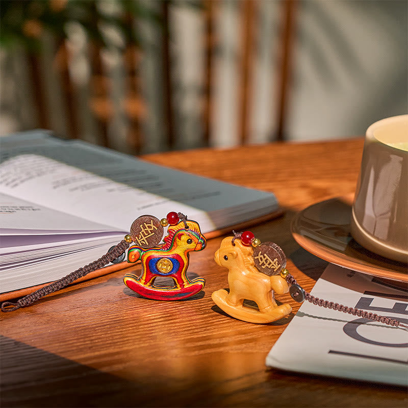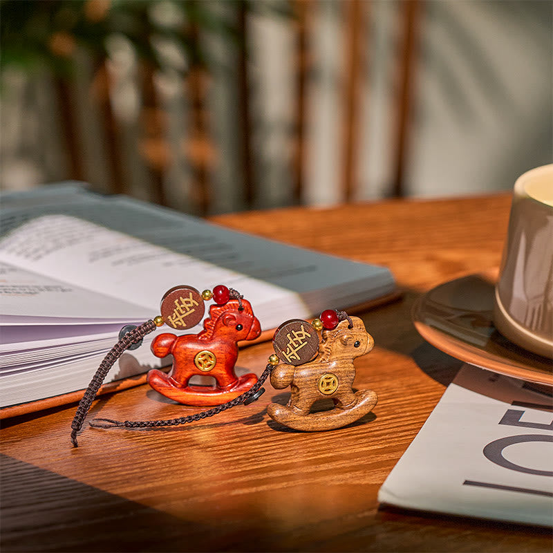 Buddha Stones Year of the Horse Rainbow Eucalyptus Small Leaf Red Sandalwood Linden Wood Ebony Carved Positive Key Chain