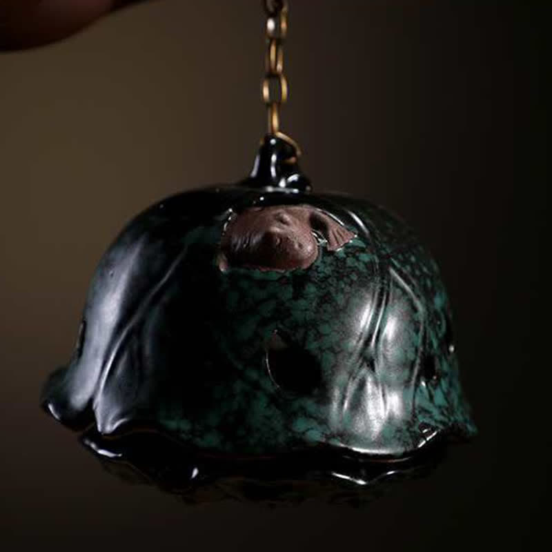 Tibetan Lotus Blessing Ceramic Incense Burner Decoration - Dark Green - image 3