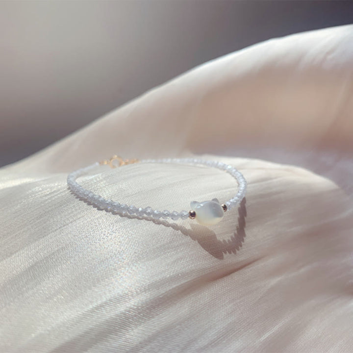 Buddha Stones 14K Gold Plated Black Spinel White Crystal Cute Cat Tridacna Stone Healing Bracelet - White Crystal&Tridacna Stone - image 11
