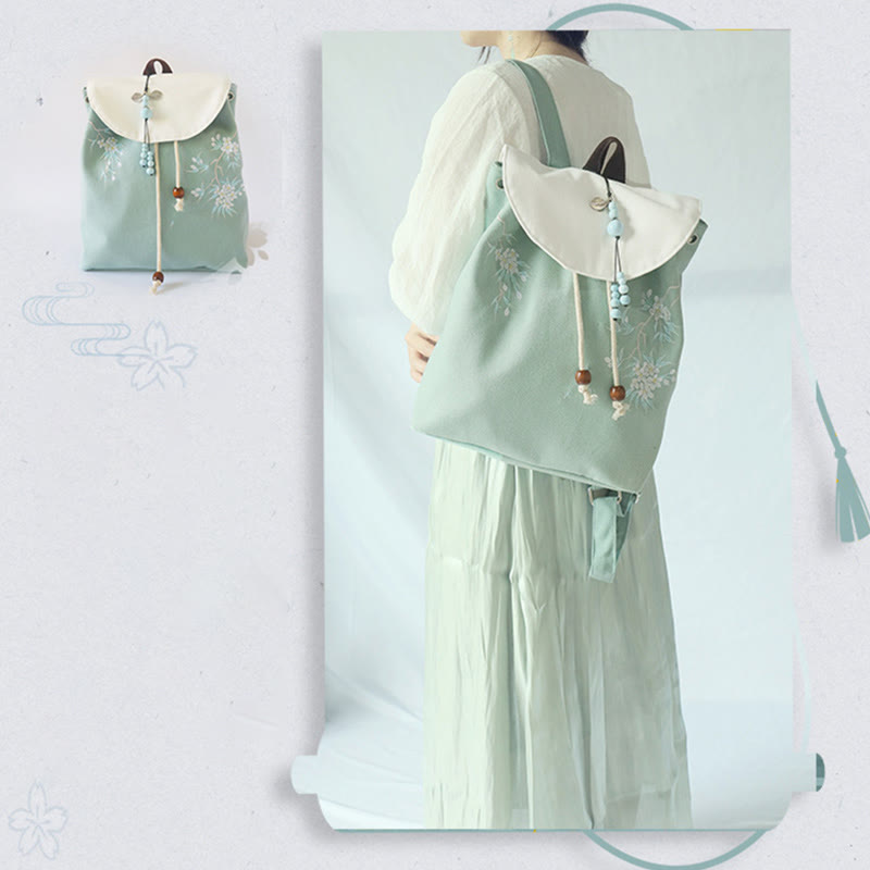 Buddha Stones Handmade Embroidered Large Capacity Canvas Backpack - Pear Blossom - image 0