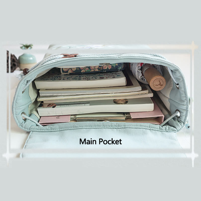Buddha Stones Handmade Embroidered Large Capacity Canvas Backpack - Pear Flower Blossom - image 37