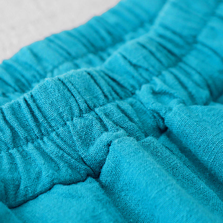 Buddha Stones Casual Plain 7-8 Length Women's Cotton Linen Harem Pants With Pockets