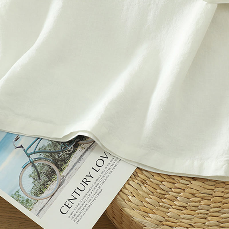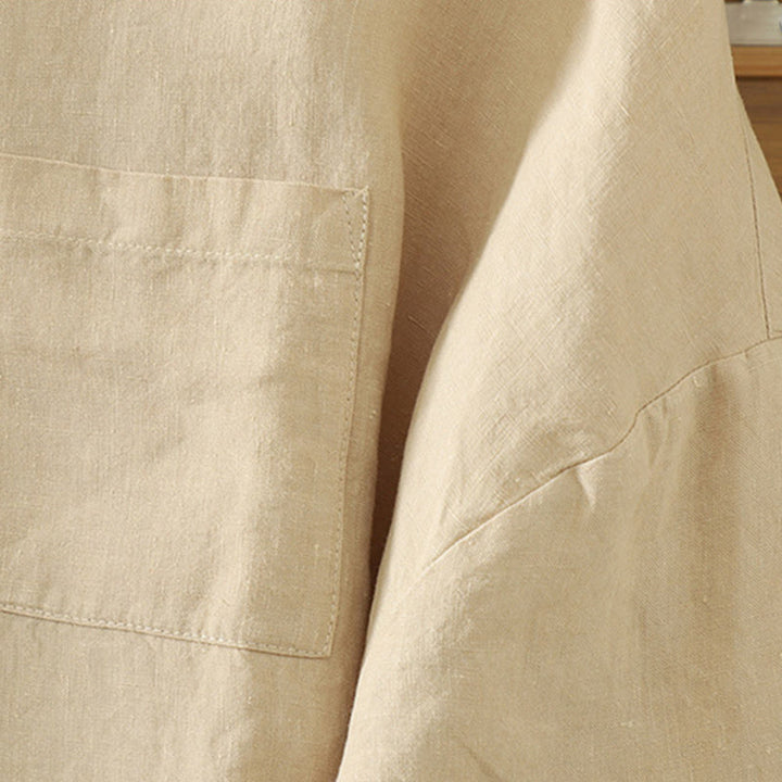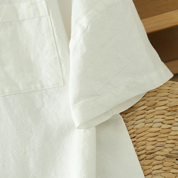Buddha Stones Casual Plain Women's Cotton Linen V-Neck T-shirt With Pocket