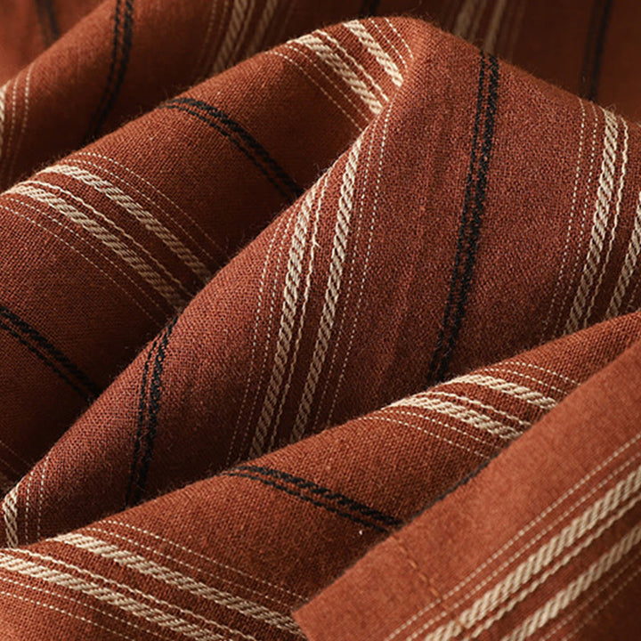 Buddha Stones Casual Retro Stripes Women's Long Sleeve Polyester Shirt - FireBrick - US12,UK/AU16,EU44 (2XL) - image 0