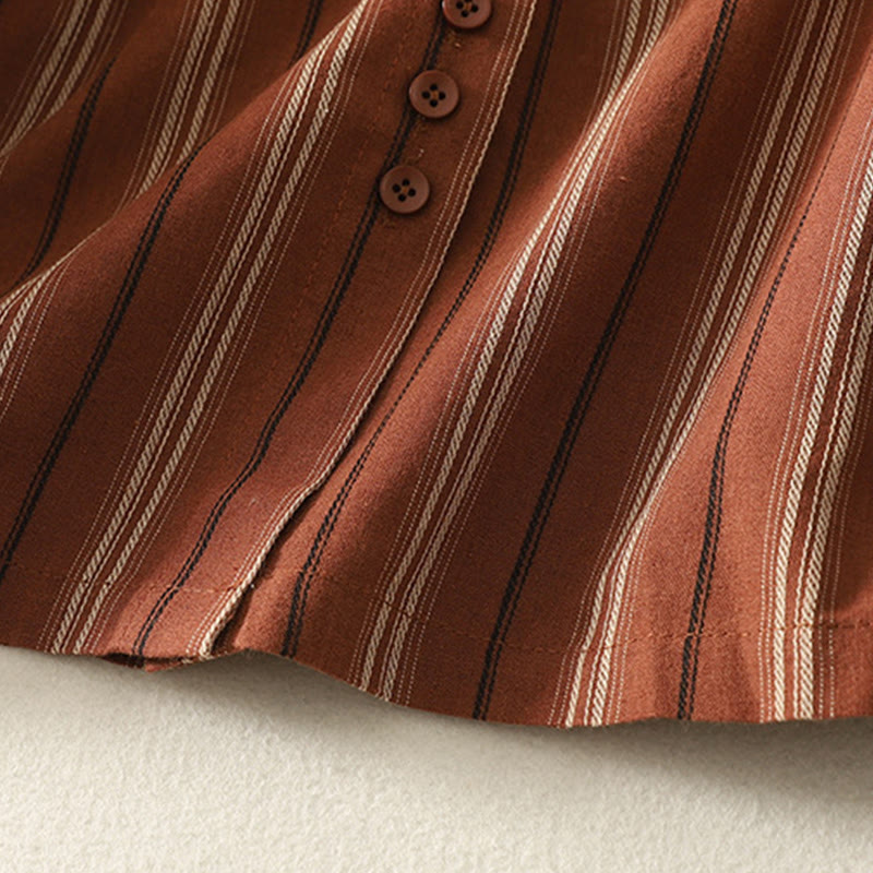 Buddha Stones Casual Retro Stripes Women's Long Sleeve Polyester Shirt - BurlyWood - US12,UK/AU16,EU44 (2XL) - image 5