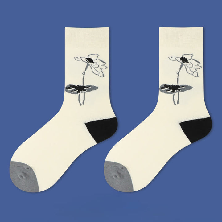Buddha Stones Casual Sailboat Ancient Town Lotus Orchid Countryside Micro Crew Women's Socks - Lotus - S-M(US 5.5-10,EU 36-41,UK/AU 3.5-7.5,AISA 22.5-25.5cm) - image 3