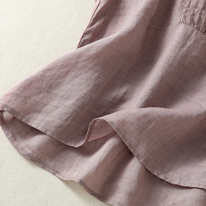 Buddha Stones Casual Sleeveless Pleated Design Women's Cotton Linen Half Sleeve Shirt - image 1
