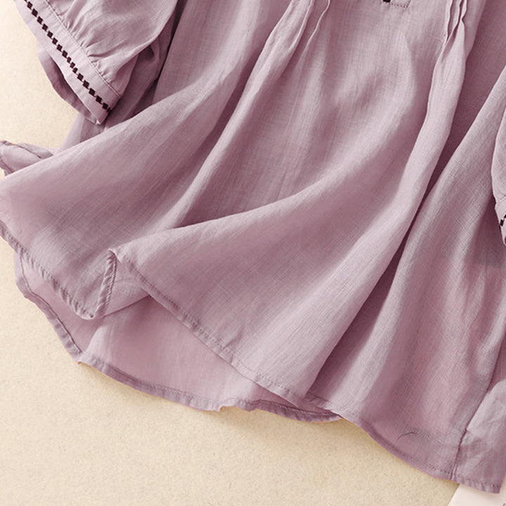 Buddha Stones Embroidery Crew Neck Pleats Women's Cotton Linen Half Sleeve T-shirt - image 16