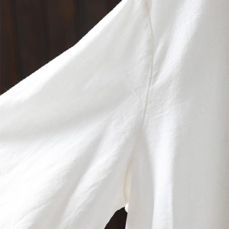 Buddha Stones Fall Buttons Down Pocket Decor Design Women's Stand Collar Long Sleeve Cotton Shirt - White - US6,UK/AU10,EU38 (L) - image 0
