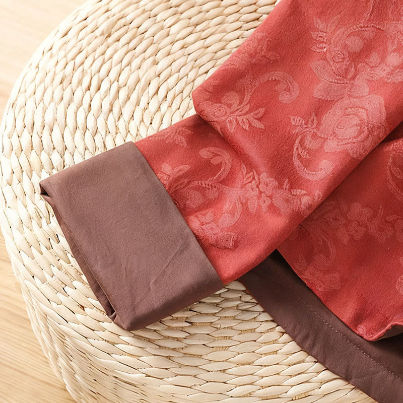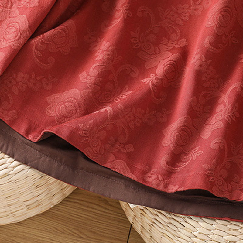 Buddha Stones Fall Jacquard Floral Print Frog-Button Stand Collar Long Sleeve Women's Cotton Shirt - Red - US8-10,UK/AU12-14,EU40-42 (2XL) - image 0