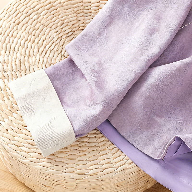 Buddha Stones Fall Jacquard Floral Print Frog-Button Stand Collar Long Sleeve Women's Cotton Shirt - Plum - US8-10,UK/AU12-14,EU40-42 (2XL) - image 8