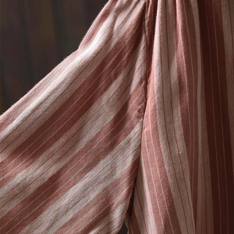 Buddha Stones Fall Vertical Stripes Button Down Stand Collar Long Sleeve Women's Cotton Shirt - IndianRed - US6,UK/AU10,EU38 (L) - image 13